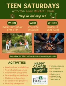 Teen Saturdays, part of the Teen IMPACT Club and in partnership with Pineville Parks & Rec, are a safe, positive, and engaging way for middle and high school students to spend their Saturday night. Every week, we meet to build community and real world skills in young people, all at no cost to participants and their families. Activities include: